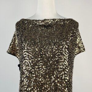 NWT Mint Velvet Gold Sequins Top Stretch Short-Sleeved T-Shirt Size XL