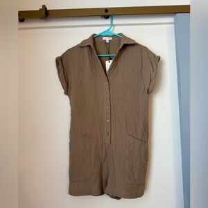 NWT Miou Muse Brown Button-Down Cotton Romper