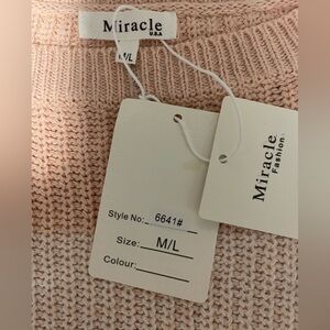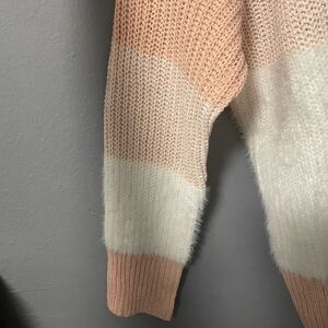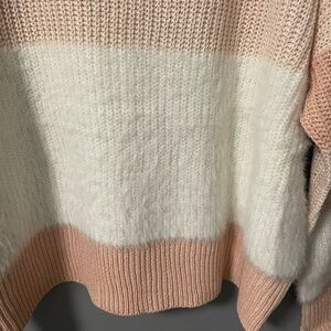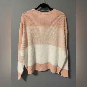 NWT Miracle Blush/Peach Knit Crew Neck White Fuzzy Colorblock Sweater. Size M/L