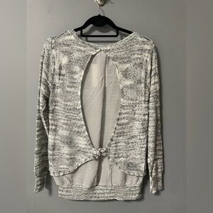 NWT Miracle Lightweight Gray Knit Sweater Semi Sheer Back Insert with Tie. S/M