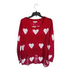 NWT Miracle | Red White Juliet’s Heart Gauge Slub Sweater Top S/M