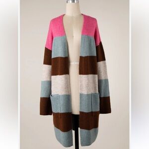 NWT Miracle Two Toned Color Block Long Body Knit Open Cardigan. Size S/M