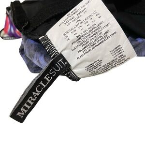NWT. Size 10. Avanti style. Underwire bra. Multicolor — blue, black, pink, white, purple & gold. In the private area there is what I believe to be residue from the protective lining that is no longer there. I tried dabbing it out with water but it did not come out which is why I believe it is from the protective lining. There is somewhat of a rectangular shape to it which also makes me think it’s from the protective lining. I am not the original owner. This was purchased second hand with tags. I’ve included photos of the area showing what I am referring to and photos with that area turned inside out where you will see there is no marks. If this suit came with detachable straps I did not receive them and they are not included with purchase. Please view photos closely as they are part of the description.