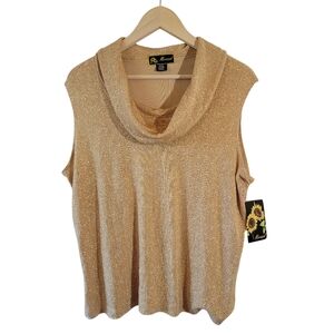 NWT Mirasol Gold Metallic Cowlneck Sleeveless Festive Top XL Glam Evening Party
