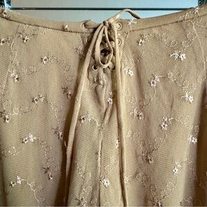 Gorgeous brand new Mirror Palais Stretch Lace pants with lace up detail in the back. Slight flare/bootcut. Fully lined. Dip front.
