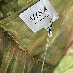 NWT Misa Chiffon Hera Ruffle Robe Top/Dress in Chartreuse Green Abstrat Print XS