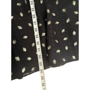 This versatile dress features a reversible deep V-neckline, allowing for varied styling options. Crafted with a sheer black fabric accented by silver diamond clip dots, it includes an elastic waist for comfort and a flattering fit. Fully lined for coverage, this mini dress is ideal for polished and modern looks. Measurements flat lay: pit to pit 17.5", waist 13" not stretched, length from shoulder to hem approx 34".