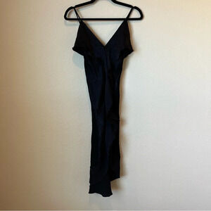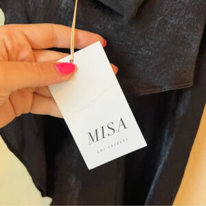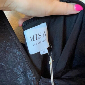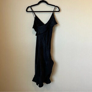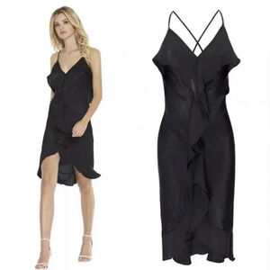 NWT Misa Los Angeles Dress Ele Black Satin Ruffle Sleeveless Dress