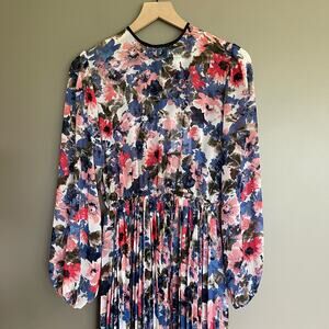 NWT Misa Los Angeles Juliana Dress Size XS Floral Pleated Chiffon Colorful Sheer