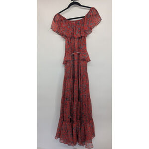 NWT Misa Los Angeles Kiera Paisley-print Tiered Maxi Dress Size M Red #1B456