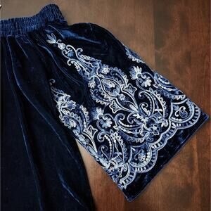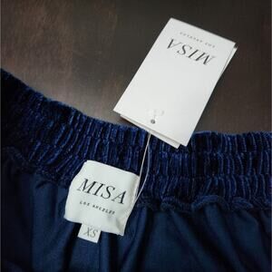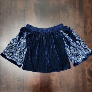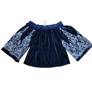 NWT Misa Los Angeles Linez Velvet Embroidered Off The Shoulder Top. Rich blue velvet with intricate embroidered flare sleeves. Misa charm on back at neckline.