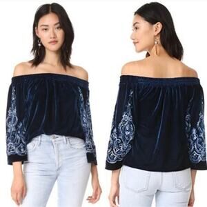NWT Misa Los Angeles Linez Velvet Embroidered Off The Shoulder Top Size XS
