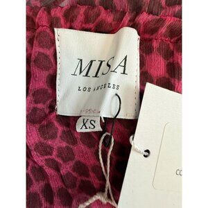 NWT Misa Los Angeles Louisa Dress XS Pink/Red Print Sheer Chiffon Midi