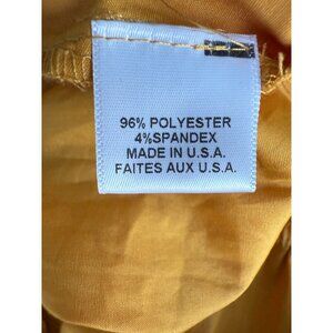 This off-shoulder mini dress features a flattering ruched bodice and a tiered ruffle skirt in a vibrant marigold hue. Crafted with a blend of polyester and spandex, it offers a tailored fit with a lightweight feel. Ideal for warm-weather wear, it combines elegance with comfort.