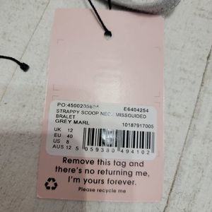 NWT Misguided grey white sports bra strappy scoop neck size 8