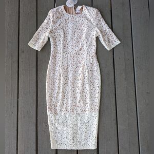 NWT Misha Collection Ivory Rosie Lace Sheath Dress - Large, Timeless Elegance