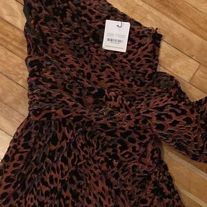 NWT Misha Collection Moxie Women’s Red Leopard One Shoulder Tie Dress Size 6