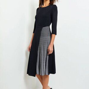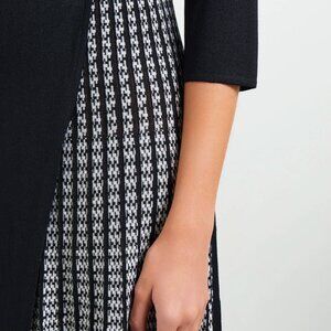 NWT Misook Pleated Contrast Panel Knit Dress Black White Size L fits 14 or 16