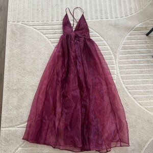 NWT Miss Avenue Burgundy Tulle Maxi Dress, in size Small