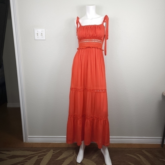 NWT Miss Avenue Coral Bohemian Peasant Maxi Dress Size Small