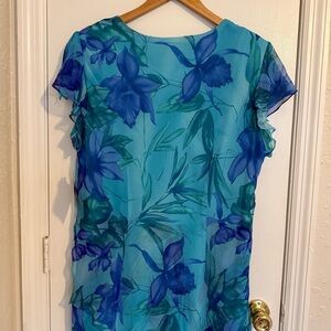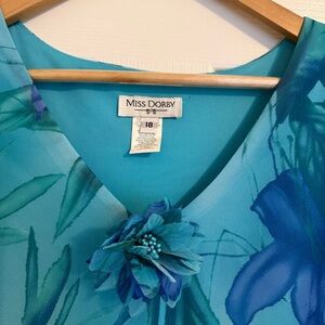 NWT Miss Dorby Blue Floral Print Sheer Overlay Formal Dress 18