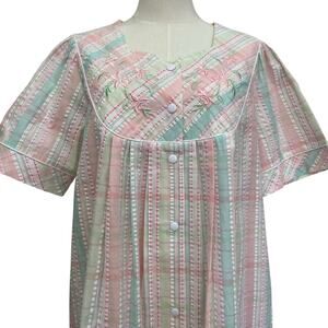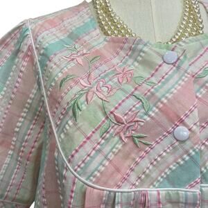 NWT Miss Elaine Pink Plaid Seersucker Embroidered Housecoat Robe Women’s size M