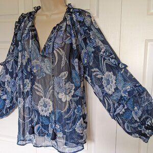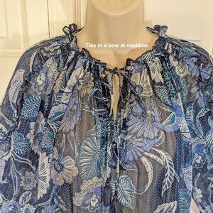 NWT Miss June Paris pullover 1 Size pullover top, Blue sheer floral, Made India