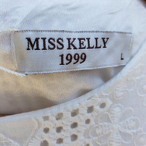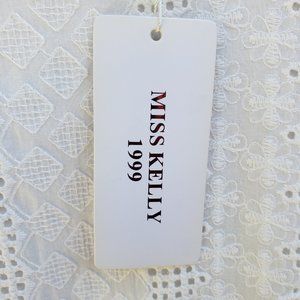 NWT Miss Kelly 1999 Lace Eyelet Fitted Dress W Bell Sleeves Size L