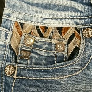 Brand NEW WITH TAGS!! Light blue wash with stretch. Miss Me Signature Skinny Jean. 29" inseam with 7.5" rise. Beautiful craftsmanship and detail. Neutral colored beading and stitchwork to compliment any outfit and add the WOW effect! Extra beads included.