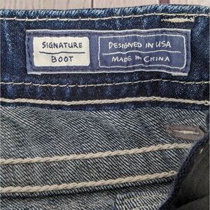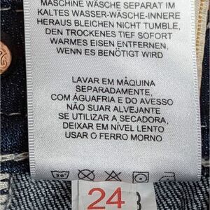 For those who want a little bling, without too much! Slimming dark wash with light distressing on the front for an extra trend factor, fading, whiskering, and silver logo hardware.