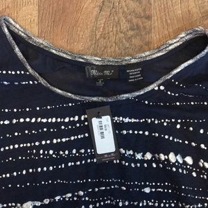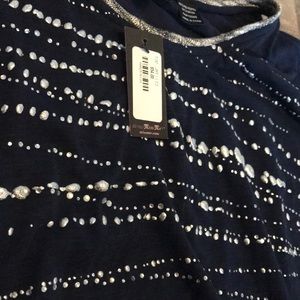 Cold shoulder Top is NWT and features a sheer back and a detailed front with rhinestones and texture detail. Great for night out or Sunday funday! Bundle to save!