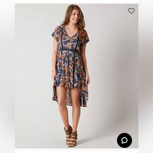 NWT Miss Me Dress Lace Floral Lined High Low Button Front Short Sleeve M