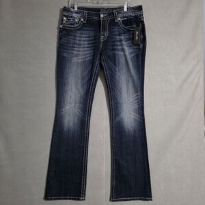 NWT Miss Me Signature Bootcut Denim Jeans Cross Embroidered Rhinestone Size 32