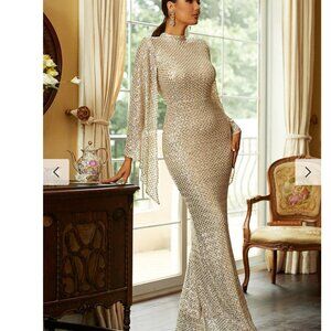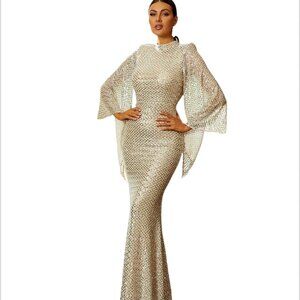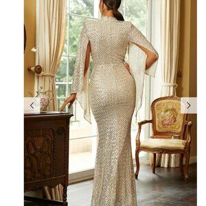 NWT Miss Ord Gold Sequin Formal Long Flare Sleeve Evening Gown Dress SZ M Prom
