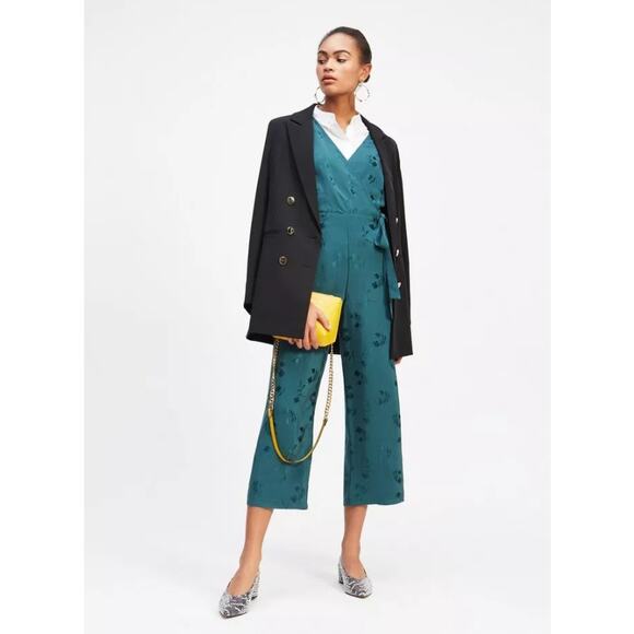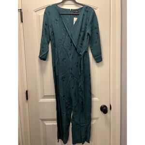 NWT Miss Selfridge Women’s V-Neck 3/4 Sleeve Floral Cropped Jumpsuit Sz 6 Green