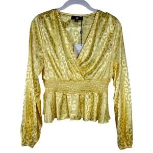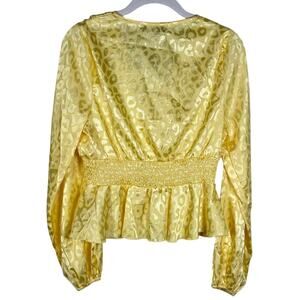 NWT Missguided Animal Jacquard Shirred Waist Yellow Metallic Blouse Women's 4