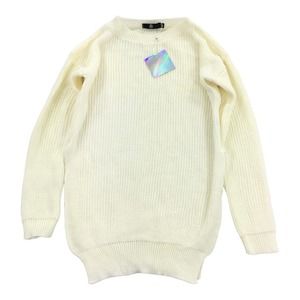 NWT Missguided Chunky Knit Side Slit Sweater S/M Womens Cream Ivory Oversized
