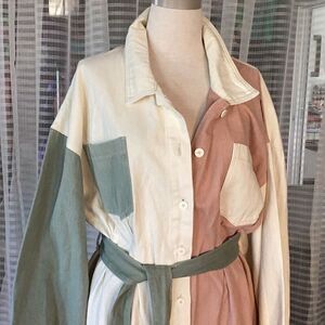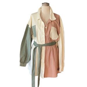 NWT Missguided Color Block Denim Shirt Dress W/ Belt Women’s 18