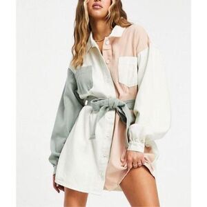 NWT Misguided Color Block Denim Shirt Dress W/ Belt Women’s 18