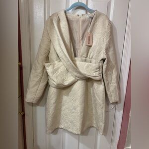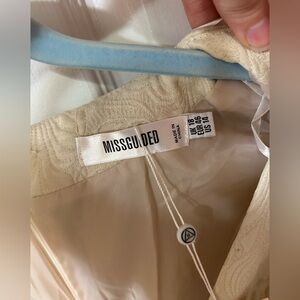 NWT Missguided Cream Jacquard Drape Front Plunge Blazer Mini Dress - Size 14