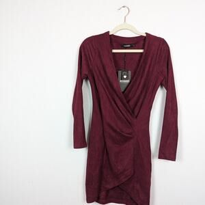 NWT Missguided Maroon Faux Suede Wrap Dress