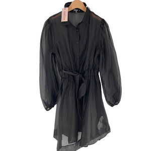 NWT Missguided Organza Sheer Button-up Shirt Dress with tie sash