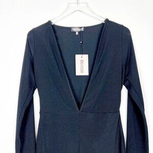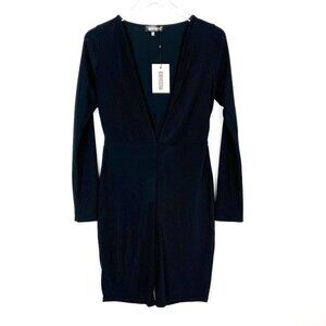 NWT Missguided Romper Women's Size 6 Black Plunge Long Sleeve Unitard Playsuit