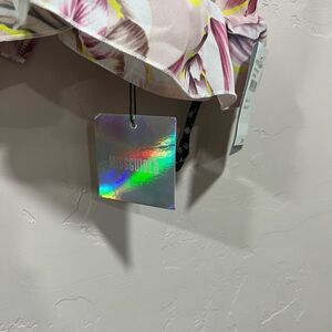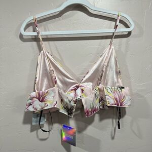 Triangle cut, silky fabric and lining, adjustable straps, zip closure.