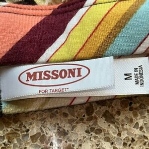Classic Missoni Chevron Pattern. 70s vibe. Rayon and spandex fabric. See measurements, colors and new with tags 🏷️ condition in no filter pictures and video. Wireless bottom band and fabrics have some stretch 🏎️ Racer back. Stored and shipped sealed