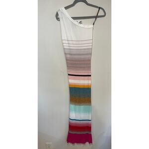 NWT Missoni Mare Striped One-Shoulder Ribbed-Knit Long Cover-Up Dress Multi S