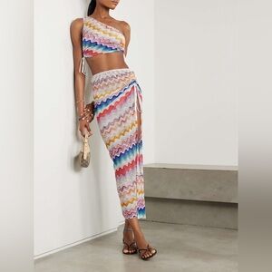 NWT Missoni One Shoulder ZigZag Knit Crochet Crop Top Metallic New Chevron 2025