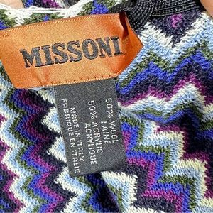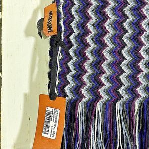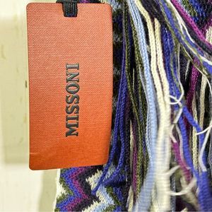 NWT Missoni Wool Colorful Blue & Purple Chevron Knit Fringe Scarf