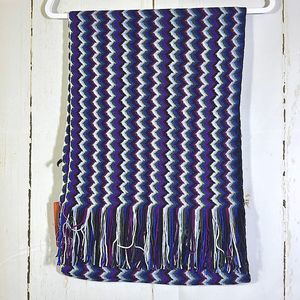 NWT Missoni Wool Blue & Purple Chevron Knit Fringe Scarf