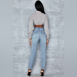 Cut from a stone washed denim, 'Dawn' have a high waist cut and unusual twisted seam detail. They have a logo to the back pocket and tapered legs. Wear yours with our 'Vacation' white shirt and boots.